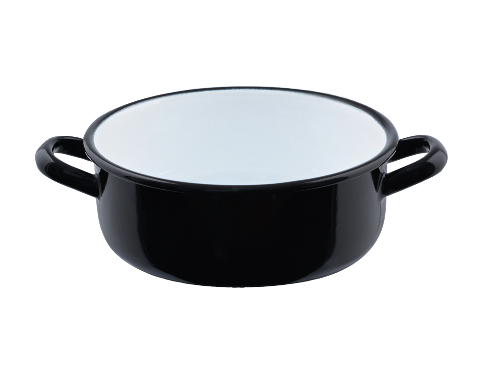 Unsere kleinsten Kasserollen sind aus extra-starkem Eisenblech gefertigt und mit edelstem Glas ummantelt. Im glühenden Ofen bei 850 °C verbinden sich Glas und Eisen zu einer glänzenden, porenlos glatten Emaille. Diese robusten Originale sind außen erdigschwarz und innen granitgesprenkelt – perfekt zum Kochen, Schmoren und Servieren in kleinen Haushalten oder zum Aufbewahren und Aufwärmen von köstlichen Resten. Das verstärkte Blech der Neuauflage verteilt die Hitze optimal und funktioniert wie alle Emailletöpfe auf allen Herdarten. Man kann in den Töpfen auch unbedenklich mit dem Messer schneiden (Ausnahme Glaskeramikmesser), wenn man die Zwerge als Serviertopf verwendet.
