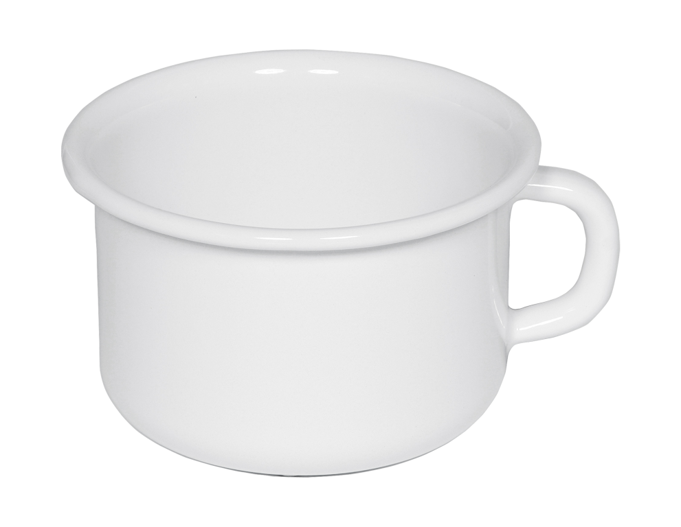 Unsere Emaille-Kaffeeschalen sind ideal, um kalte Finger zu wärmen und den reinen Geschmack von Punsch, Glühwein, Tee, Kaffee oder Schokolade zu bewahren. Die porenlos glatte und bakterienhemmende Glasoberfläche sorgt dafür. Die Kaffeeschale verfügt über einen bequemen seitlichen Griff und einen weichen, gebogenen Rand, der das Trinken angenehm macht. Sie können Ihr Getränk direkt in der Kaffeeschale auf dem Herd erwärmen, sei es auf Induktions- oder anderen Herdarten. Es sollte jedoch nur mit kleiner Flamme gekocht werden, da der Durchmesser des Bodens sehr klein ist. Beim Erwärmen von Milch empfiehlt es sich, etwas Wasser hinzuzufügen, um ein Anbrennen zu verhindern. Bereichern Sie Ihre Küche mit diesen stilvollen und funktionalen Emaille-Kaffeeschalen, die sowohl zuhause als auch bei Outdoor-Abenteuern überzeugen.