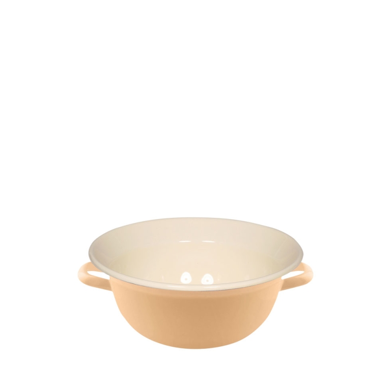 Die typische Form des Weitlings hat in Österreich eine lange Tradition, insbesondere als Teigschüssel. Weitlinge sind Emailleschüsseln mit zwei großen Henkeln, die das Transportieren schwerer Teige erleichtern. Unsere Weitlinge haben alle den typischen Bördelrand. Es gibt sie in verschiedenen Größen, und sie sind vielseitige Helfer beim Backen und Kochen oder als Serviergeschirr. Der Weitling eignet sich nicht nur zum Kneten von Teigen, sondern auch zum Servieren von Salaten oder Obst. In den kleineren Weitlingen lassen sich das morgendliche Müsli zubereiten oder Aufstriche, Nüsse, Knabbergebäck und Kekse servieren. Dunkle Spuren auf der Emaille, die nach dem Gebrauch von Schneebesen oder Mixern entstehen können, sind meist Abrieb von Besteck oder Metallküchenhelfern. Diese lassen sich einfach mit dem RIESS Emaillereiniger oder einer milden Scheuercreme entfernen.
