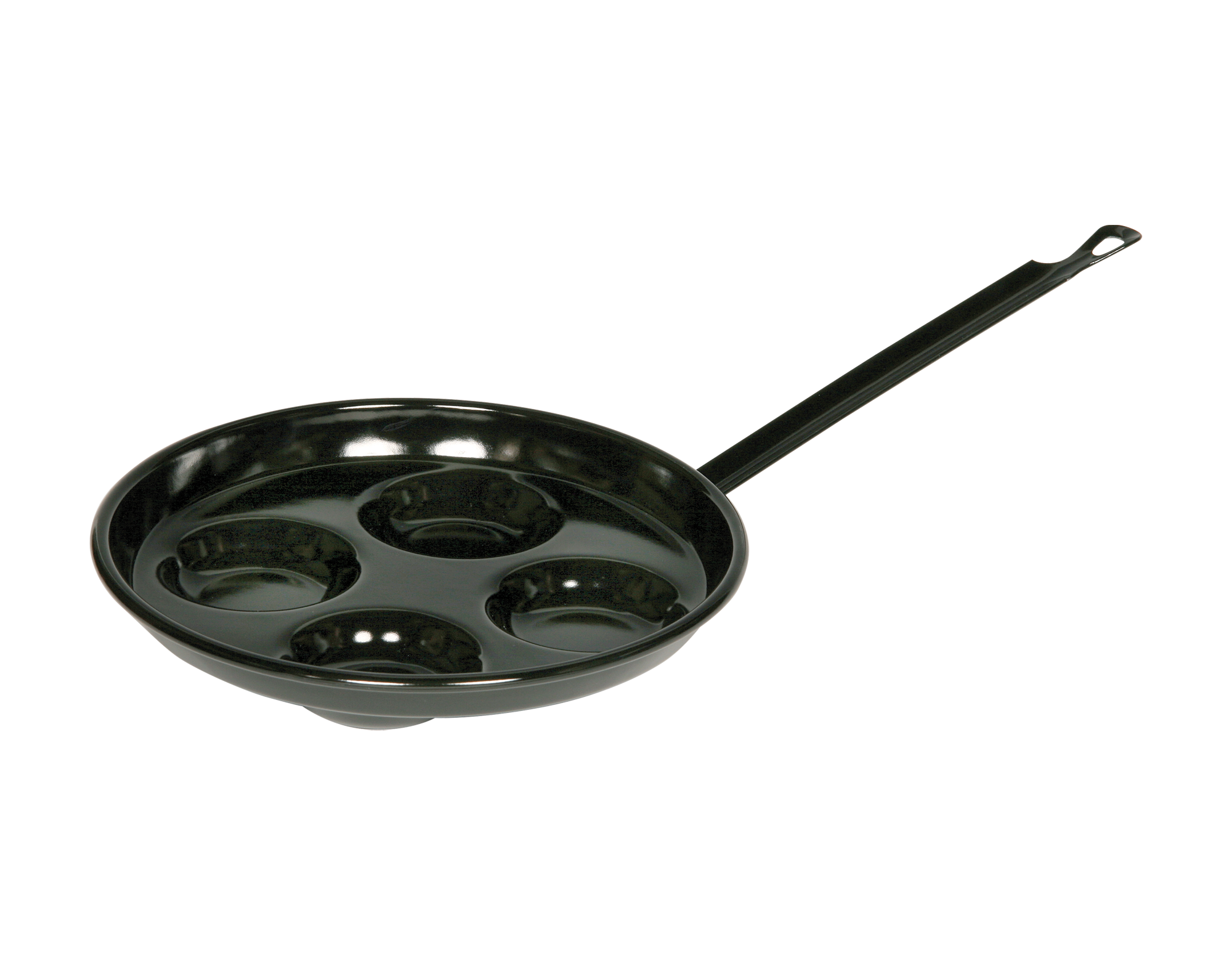 Die Augenpfanne aus schwarzer Emaille ist perfekt für kreisrunde und gleichmäßige Spiegeleier. Mit ihren vier Einbuchtungen am Pfannenboden ist sie ideal für jeweils ein Spiegelei. Der Eisenkern der Emaille sorgt für eine optimale und schnelle Hitzeverteilung, sodass die Temperatur schnell gesenkt werden kann – ideal für Eiergerichte, die keine hohen Temperaturen vertragen. Nach dem Braten ist die Pfanne sehr leicht zu reinigen, auch im Geschirrspüler, und bei richtigem Gebrauch sowie sachgemäßer Pflege unverwüstlich. Neben Spiegeleiern lassen sich in der Augenpfanne auch Liwanzen, Dalken aus Germteig (Hefeteig) oder Mini-Pancakes hervorragend zubereiten. Daher ist die Augenpfanne auch als Liwanzenpfanne, Dalkenpfanne oder Pancake-Pfanne bestens geeignet. Zum Braten von Eiern oder Germspeisen in der Augenpfanne empfiehlt es sich, Butter oder Öl zu verwenden, jedoch keine zu hohen Temperaturen.