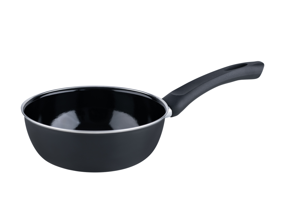 Our high-walled enamel pans are true multi-talents: With their generous depth, they are perfect for braising meat, cooking vegetables, or preparing hearty stews. They are also ideal for preparing larger portions such as curries or ragouts. The robust enamel made from natural raw materials ensures extraordinary durability and an even cooking result. The extra-strong steel heat retention bottom guarantees optimal heat transfer and retention, making energy-efficient sustainable cooking possible. The ergonomic plastic handle and rust-free, particularly durable edge make handling the pan particularly comfortable. The enamel pan body is heat-resistant up to 450°C, while the plastic handle is only heat-resistant up to 180°C. Thanks to the cutting and scratch-resistant enamel, you can serve or enjoy directly from the pan.