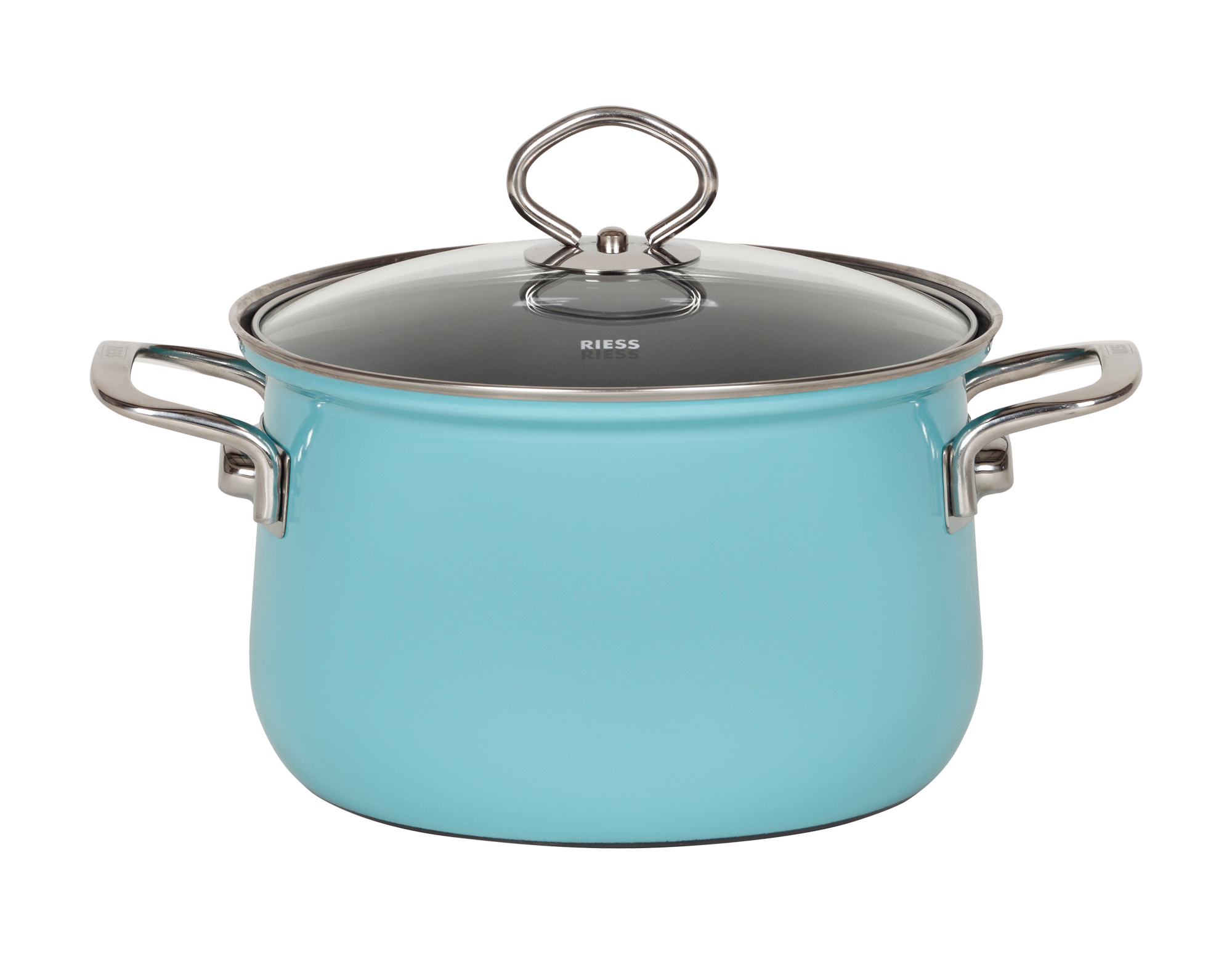 Cleaning in the dishwasher: RIESS enamel can be washed in the dishwasher. However, we recommend hand washing to ensure long-lasting enjoyment of enamel’s brilliant shine. If you use the dishwasher, select the gentle glassware program to preserve the gloss and vibrant colors of the enamel for as long as possible. For sparkling clean pots and pans, use the gentle glassware program and the cleaning products from our partner Claro. You can find all tips on dishwasher care in this video.