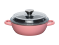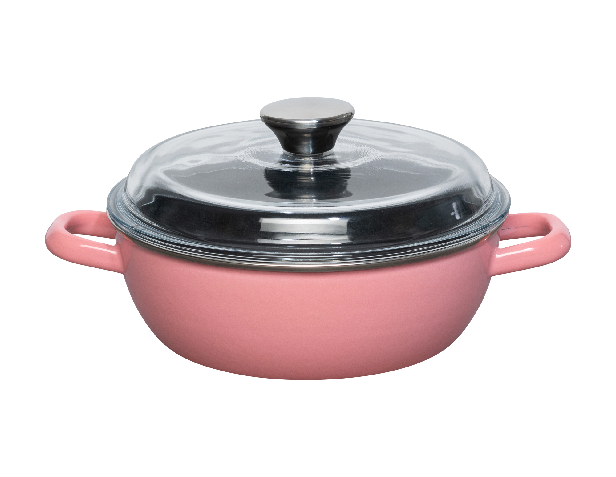 Die starke, poppige Farbe Pink ist ein knalliger Blickfang und bringt Frische für jede Küche. Töpfe und Kasserollen sind mit starkem Stahl-Wärmespeicherboden, rostfreiem Schüttrand, Edelstahlgriffen und Glasdeckel ausgestattet.