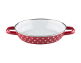 Omelett(e), Rührei, Eierspeis, Spiegelei: Für diese Eiergerichte und viele mehr ist unsere Eierpfanne genau richtig. Sie hat die richtige Größe für Omelette und andere Eiergerichte. Der Eisenkern der Emaillepfanne verteilt die Hitze am Pfannenboden optimal und rasch, sodass die Hitze rasch gedrosselt werden kann, denn Eiergerichte vertragen keine zu hohen Temperaturen. Und sind die Eier fertig gebraten, eignet sich die Pfanne mit ihren zwei Griffen perfekt als Servierpfanne, aus der auch gegessen werden kann, denn Emaille ist schnitt- und kratzfest.