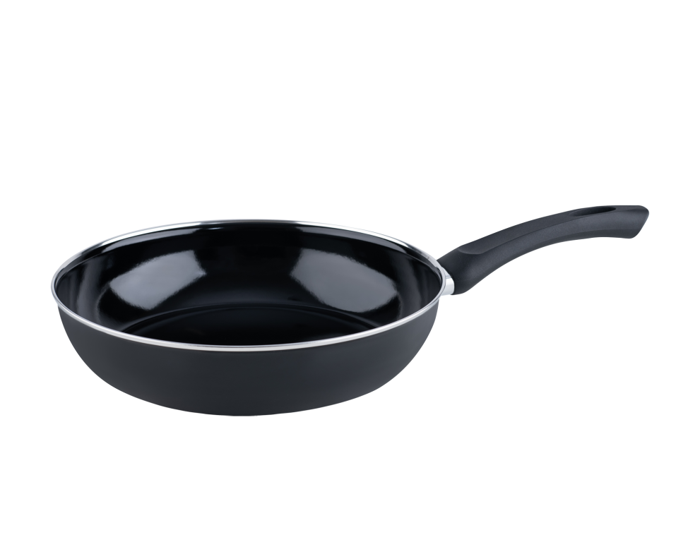Klassische Pfannen altbewährt in reinstem Schwarz, mit denen alles dank der dunklen Oberfläche besonders braun und knusprig gebacken und gebraten wird.