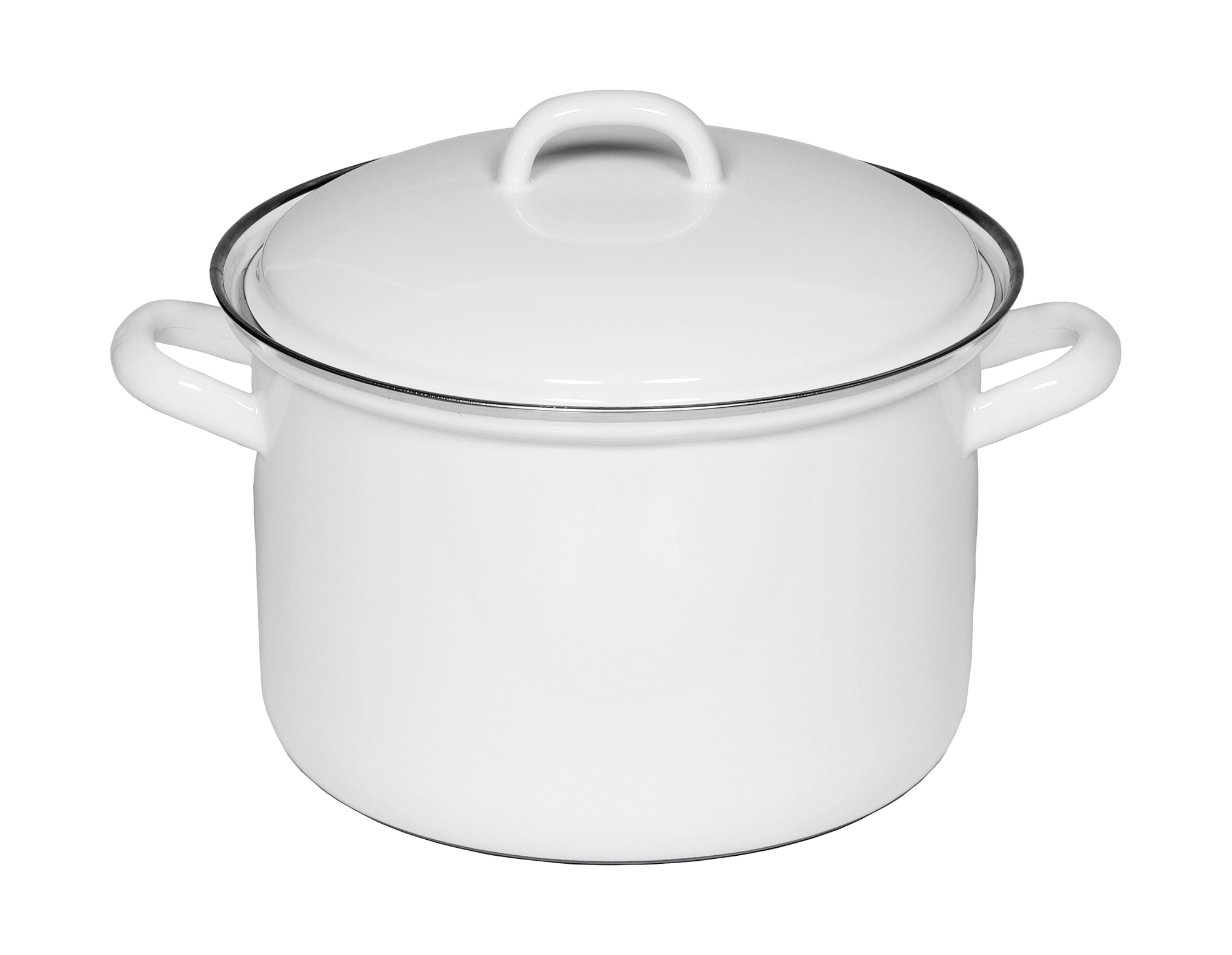 Strahlendes Weiß ist in jeder Küche schön, ob als Topf, Kasserolle, Schnabeltopf, Sieb, Schöpf- oder Schaumlöffel.