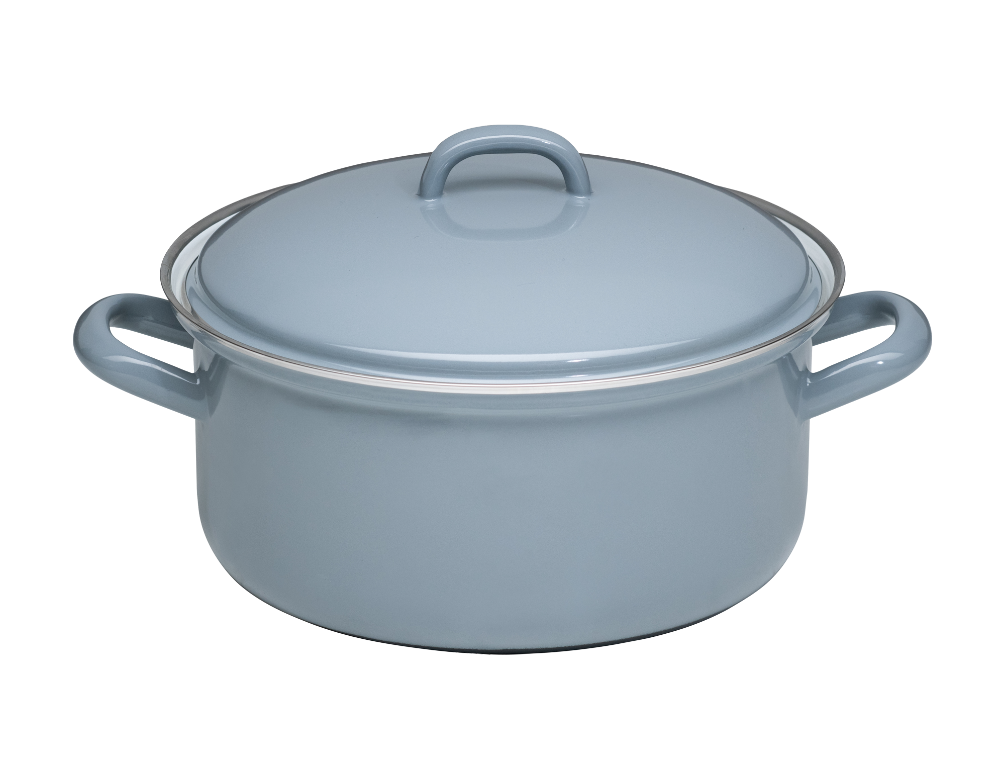 Unsere klassischen Emaille-Kasserollen mit Deckel zeichnen sich durch ihre gerade Form und die traditionellen Emaillegriffe aus. Der Deckel sitzt fest auf der Kasserolle und dient als Energiewächter: Sobald der Deckel zu klappern beginnt, ist es Zeit, die Hitze zu reduzieren und so Strom zu sparen. Je nach Herd kann etwa 5 Minuten vor Garende vollständig abgeschaltet werden, da Emaille die Hitze lange speichert. Daher empfehlen wir dringend, Topflappen zum Heben der Töpfe und Deckel zu verwenden, da auch die Emaillegriffe die Wärme speichern. Ein weiterer Vorteil der Emaillegriffe ist, dass man den Topf auch problemlos zum Warmhalten in den Backofen schieben kann. Der Rand der Kasserolle ist mit einem robusten Chromrand versehen. Die Kasserolle mit Deckel ist je nach Farbe und Dekor in verschiedenen Größen erhältlich und gehört zur Basisausstattung jeder Küche.