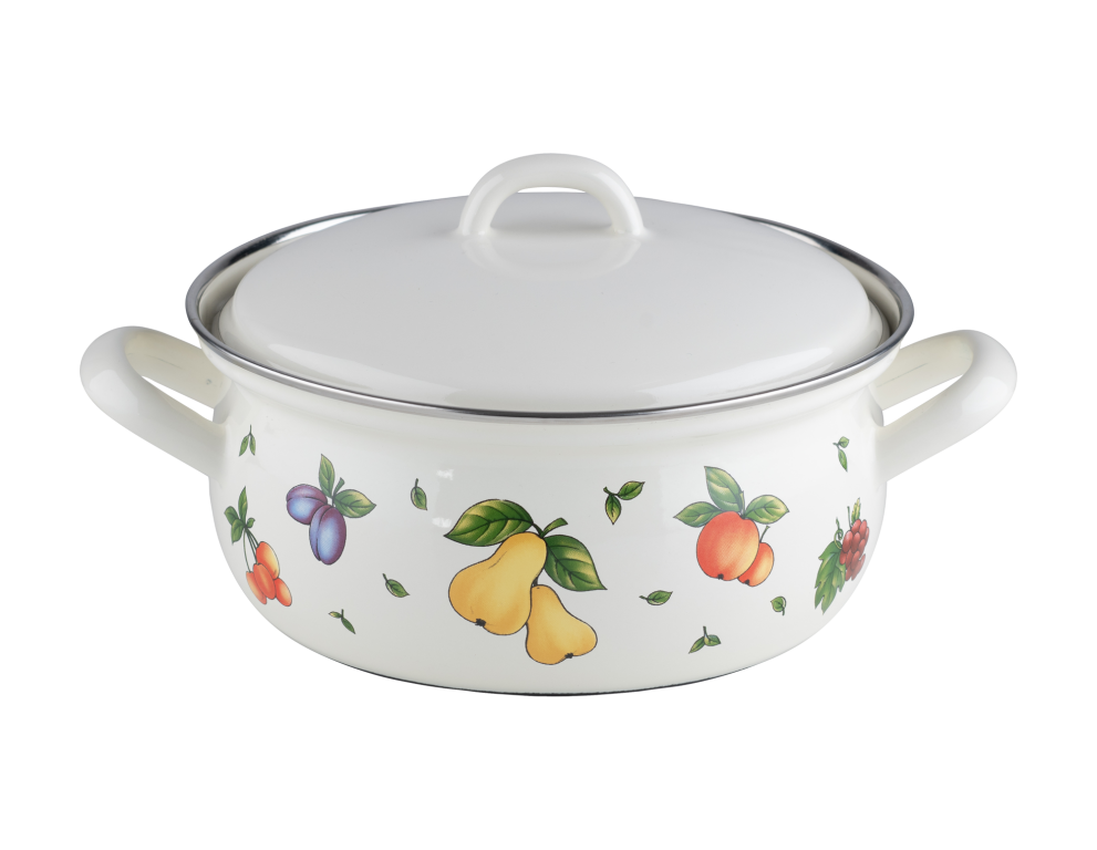 Unsere Kasserollen mit Deckel in dieser Version haben eine bauchige Form und klassische Emaillegriffe. Der Deckel liegt gut auf der Kasserolle und fungiert als Energiewächter: Sobald er zu klappern beginnt, ist es Zeit, die Hitze zu reduzieren, um Strom zu sparen. Je nach Herd kann etwa 5 Minuten vor Garende vollständig abgeschaltet werden, da Emaille die Hitze lange speichert. Daher empfehlen wir dringend, Topflappen zum Heben der Töpfe und Deckel zu verwenden, da auch die Emaillegriffe die Wärme speichern. Ein Vorteil der Emaillegriffe ist, dass der Topf problemlos zum Warmhalten in das Backrohr geschoben werden kann. Der Rand der Kasserolle ist mit einem robusten Chromrand versehen.