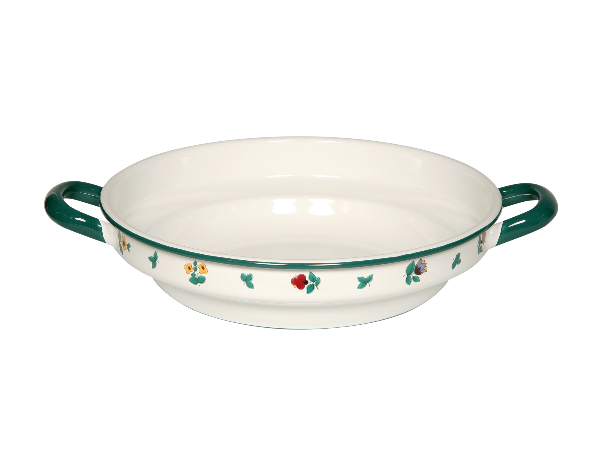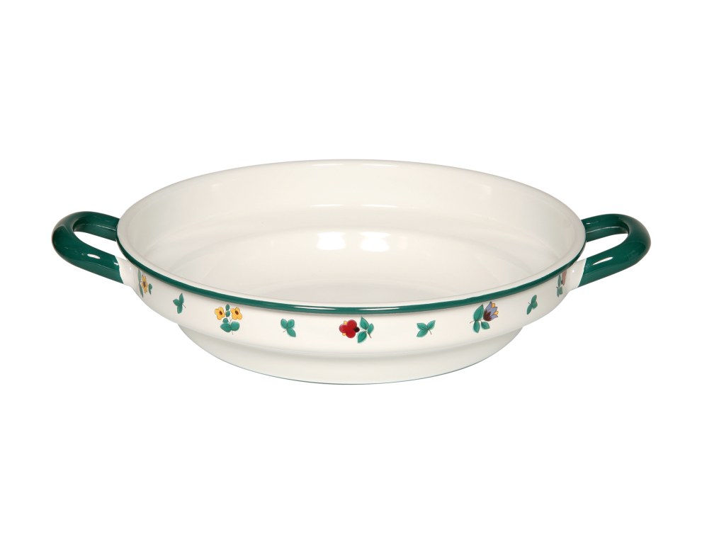 Die Bauernschüsseln aus Emaille mit zwei Haltegriffen sind ein farbenfroher Blickfang in der Küche und bewahren den Geschmack der Speisen. Sie eignen sich hervorragend als Obst- oder Salatschüsseln, aber auch als Serviergeschirr für viele Gerichte.