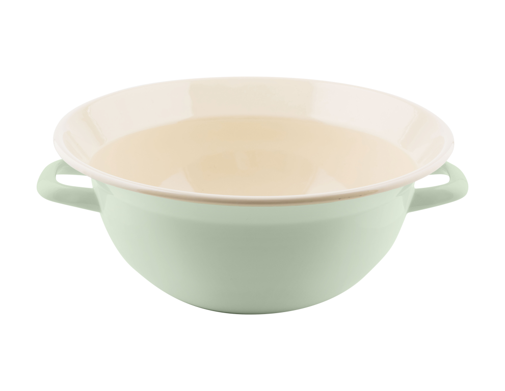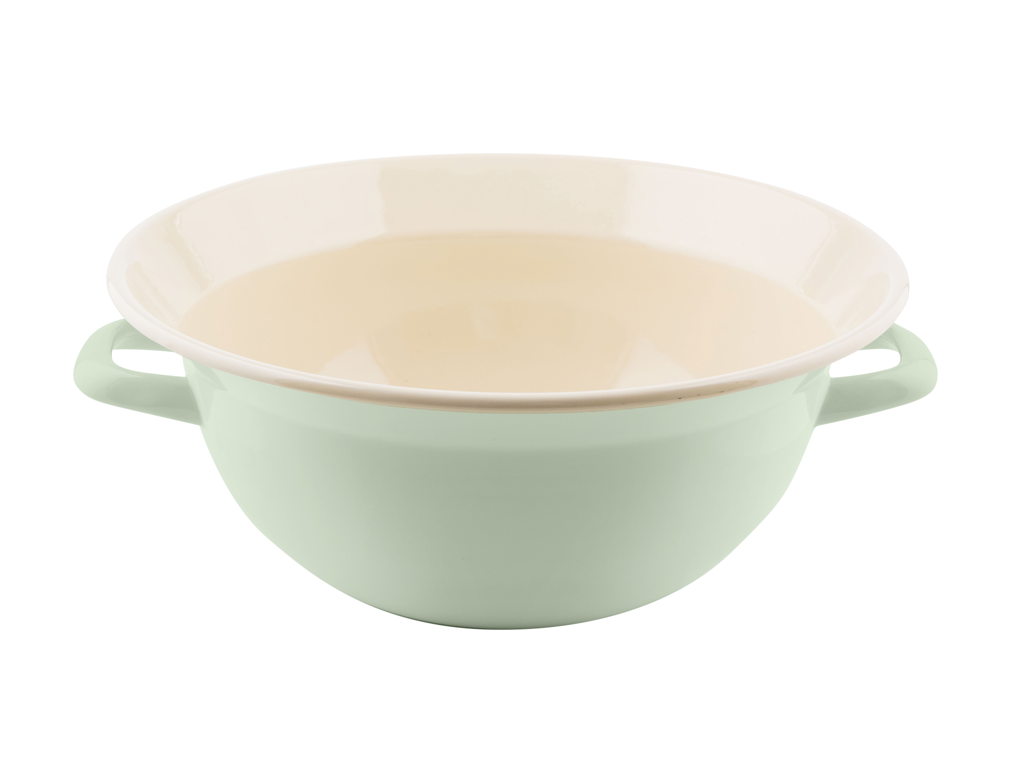 Die typische Form des Weitlings hat in Österreich eine lange Tradition, insbesondere als Teigschüssel. Weitlinge sind Emailleschüsseln mit zwei großen Henkeln, die das Transportieren schwerer Teige erleichtern. Unsere Weitlinge haben alle den typischen Bördelrand. Es gibt sie in verschiedenen Größen, und sie sind vielseitige Helfer beim Backen und Kochen oder als Serviergeschirr. Der Weitling eignet sich nicht nur zum Kneten von Teigen, sondern auch zum Servieren von Salaten oder Obst. In den kleineren Weitlingen lassen sich das morgendliche Müsli zubereiten oder Aufstriche, Nüsse, Knabbergebäck und Kekse servieren. Dunkle Spuren auf der Emaille, die nach dem Gebrauch von Schneebesen oder Mixern entstehen können, sind meist Abrieb von Besteck oder Metallküchenhelfern. Diese lassen sich einfach mit dem RIESS Emaillereiniger oder einer milden Scheuercreme entfernen.