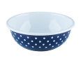 Emaille im Dirndlkleid – in drei blau/weißen Variationen: pünktchenblau, dirndlblau, blümchenblau