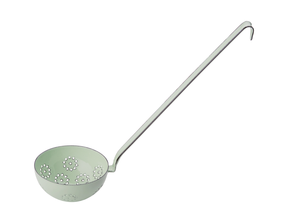 Der Schaumlöffel, als gelochte Version unseres Schöpflöffels, ist ideal zum Herausfischen von Knödeln, Nockerln oder Gemüse aus dem Wasser. Mit seinem langen Stiel und dem gebogenen Ende lässt sich der Schaumlöffel gut aufhängen und ist somit nicht nur ein praktischer Helfer, sondern auch ein sympathischer Blickfang in der Küche. Er wird gerne mit unserem Schöpflöffel und der Backschaufel kombiniert. Zusammen aufgehängt, sehen sie besonders gut aus, am besten auf unserer Löffelblechleiste oder einem anderen Aufhängesystem.