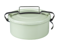 Mit unserer runden Dichtungsdose aus Emaille können Sie Ihre Lieblingsspeisen sicher und bequem überallhin transportieren. Ob ins Büro, zum Picknick oder zum Abendessen mit Freunden – die Speisen werden in die Dose gefüllt, mit der Eisenspange fest verschlossen und mithilfe des Griffs einfach transportiert. Die Gummidichtung im Deckel verhindert das Auslaufen von flüssigem Inhalt. In der geöffneten Dose kann der Inhalt auch sanft auf dem Herd erwärmt werden, wobei der Bügel des Klemmverschlusses als Haltegriff dient. Die runde Aufbewahrungsdose eignet sich hervorragend zur Aufbewahrung von gekochten Speisen. Die porenlose Oberfläche ist resistent gegenüber Fruchtsäuren und Laugen und ist bakterien- und schmutzabweisend, sodass Essensreste hygienisch verwahrt und ihr natürlicher Geschmack bewahrt werden. Für den richtigen Gebrauch der Dichtungsdose gibt es unsere Gebrauchsanweisung und Pflegehinweise. Der Unterteil der Dose kann auch zum Aufwärmen von Speisen verwendet werden, z.B. können bei Campingurlauben zuerst Lebensmittel transportiert und dann in der Dose erwärmt werden. Emaille ist auch für offenes Feuer und Gasbrenner geeignet. Wenn die Dose mit heißem Inhalt verschlossen wird, kann ein Vakuum entstehen und der Deckel lässt sich dann nicht öffnen. Es ist besser, den Speiseninhalt vor dem Schließen abkühlen zu lassen. Sollte ein Vakuum entstanden sein, versuchen Sie nicht, den Deckel mit spitzen Gegenständen zu öffnen. Das Vakuum löst sich von selbst, wenn die Dose mit Inhalt erwärmt wird, und der Deckel kann dann leicht geöffnet werden.