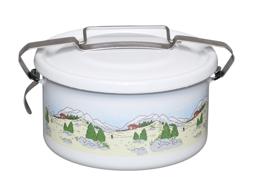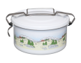 Mit unserer runden Dichtungsdose aus Emaille können Sie Ihre Lieblingsspeisen sicher und bequem überallhin transportieren. Ob ins Büro, zum Picknick oder zum Abendessen mit Freunden – die Speisen werden in die Dose gefüllt, mit der Eisenspange fest verschlossen und mithilfe des Griffs einfach transportiert. Die Gummidichtung im Deckel verhindert das Auslaufen von flüssigem Inhalt. In der geöffneten Dose kann der Inhalt auch sanft auf dem Herd erwärmt werden, wobei der Bügel des Klemmverschlusses als Haltegriff dient. Die runde Aufbewahrungsdose eignet sich hervorragend zur Aufbewahrung von gekochten Speisen. Die porenlose Oberfläche ist resistent gegenüber Fruchtsäuren und Laugen und ist bakterien- und schmutzabweisend, sodass Essensreste hygienisch verwahrt und ihr natürlicher Geschmack bewahrt werden. Für den richtigen Gebrauch der Dichtungsdose gibt es unsere Gebrauchsanweisung und Pflegehinweise. Der Unterteil der Dose kann auch zum Aufwärmen von Speisen verwendet werden, z.B. können bei Campingurlauben zuerst Lebensmittel transportiert und dann in der Dose erwärmt werden. Emaille ist auch für offenes Feuer und Gasbrenner geeignet. Wenn die Dose mit heißem Inhalt verschlossen wird, kann ein Vakuum entstehen und der Deckel lässt sich dann nicht öffnen. Es ist besser, den Speiseninhalt vor dem Schließen abkühlen zu lassen. Sollte ein Vakuum entstanden sein, versuchen Sie nicht, den Deckel mit spitzen Gegenständen zu öffnen. Das Vakuum löst sich von selbst, wenn die Dose mit Inhalt erwärmt wird, und der Deckel kann dann leicht geöffnet werden.