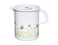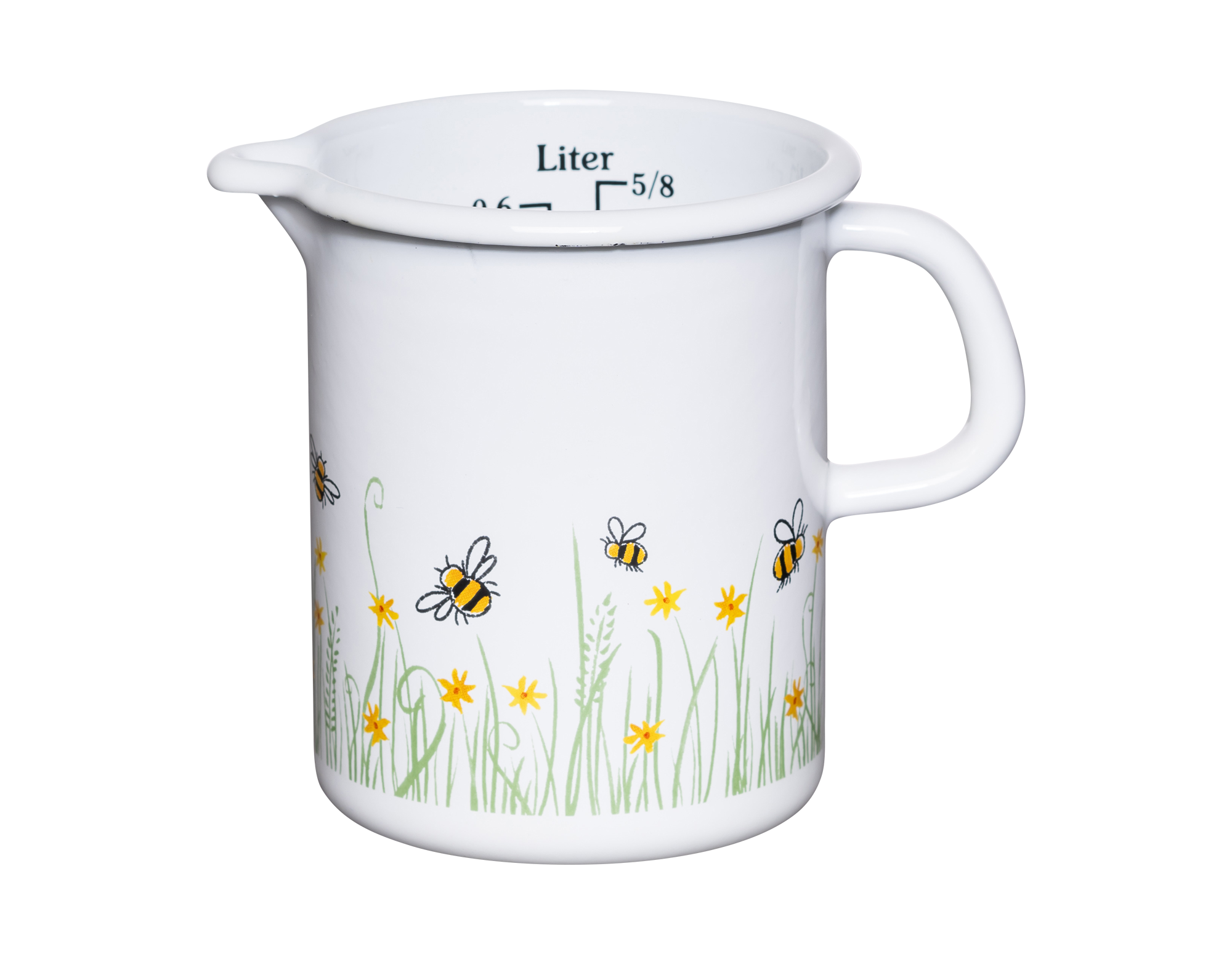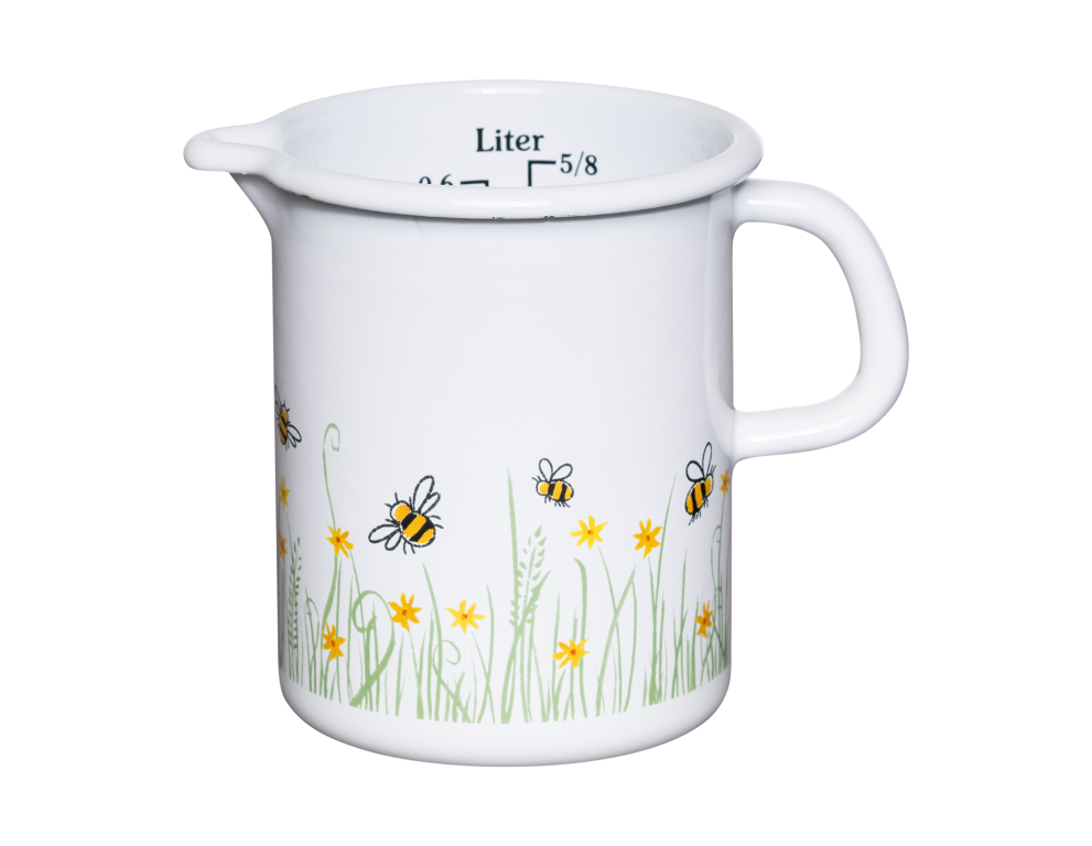 Das Küchenmaß oder der Messbecher ist ein unverzichtbares Werkzeug zum Portionieren von Koch- und Backzutaten wie Mehl, Zucker, Milch, Wasser sowie anderen kalten oder heißen Flüssigkeiten. Im Inneren des Messbechers befinden sich zwei Skalen, die einmal Liter in Zentilitern und je nach Größe des Messbechers auch in 1/4 oder 1/8 Liter anzeigen – dies entspricht der traditionellen österreichischen Maßeinheit für Flüssigkeiten. Der Messbecher ist mit einem bequemen seitlichen Griff und einem Ausguss, genannt Schnabel, ausgestattet, der das Ausgießen von Flüssigkeiten erleichtert. Der Emaille-Messbecher eignet sich auch hervorragend zum Erwärmen von genau abgemessenen Flüssigkeiten wie Milch oder Wasser für den Hefeteig oder Suppe für Risotto. Es sollte jedoch mit kleiner Flamme gekocht werden, da der Durchmesser des Bodens sehr klein ist. Beim Erwärmen von Milch empfiehlt es sich, etwas Wasser hinzuzufügen, um Anbrennen zu verhindern.