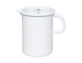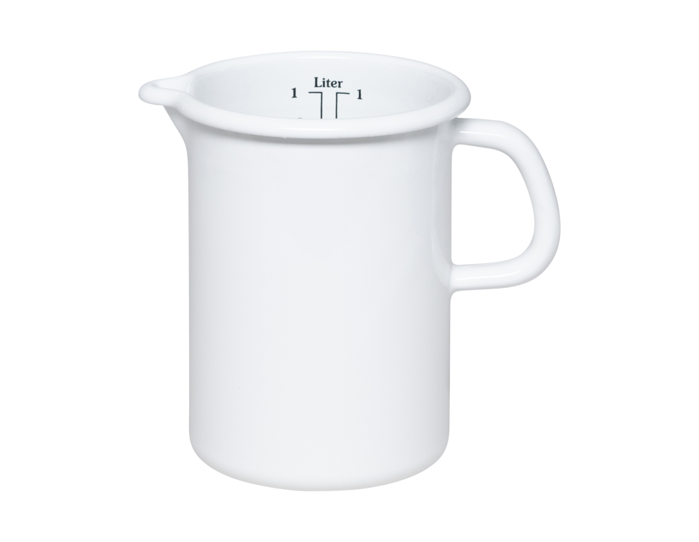 Das Küchenmaß oder der Messbecher ist ein unverzichtbares Werkzeug zum Portionieren von Koch- und Backzutaten wie Mehl, Zucker, Milch, Wasser sowie anderen kalten oder heißen Flüssigkeiten. Im Inneren des Messbechers befinden sich zwei Skalen, die einmal Liter in Zentilitern und je nach Größe des Messbechers auch in 1/4 oder 1/8 Liter anzeigen – dies entspricht der traditionellen österreichischen Maßeinheit für Flüssigkeiten. Der Messbecher ist mit einem bequemen seitlichen Griff und einem Ausguss, genannt Schnabel, ausgestattet, der das Ausgießen von Flüssigkeiten erleichtert. Der Emaille-Messbecher eignet sich auch hervorragend zum Erwärmen von genau abgemessenen Flüssigkeiten wie Milch oder Wasser für den Hefeteig oder Suppe für Risotto. Es sollte jedoch mit kleiner Flamme gekocht werden, da der Durchmesser des Bodens sehr klein ist. Beim Erwärmen von Milch empfiehlt es sich, etwas Wasser hinzuzufügen, um Anbrennen zu verhindern.