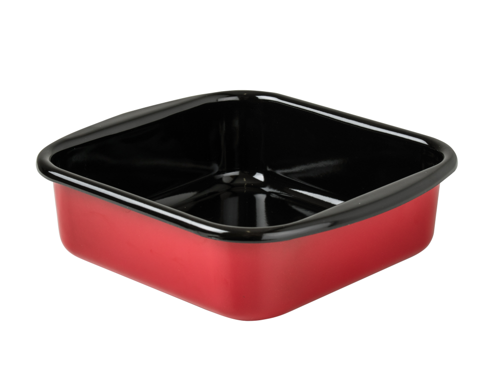 Strahlendes Rot außen – die Farbe der Liebe (die bekanntlich durch den Magen geht) – und klassisches Schwarz innen: Produkte aus roter Emaille in Hülle und Fülle. Einem Koch- und Back- vergnügen in Rot steht somit nichts im Wege.