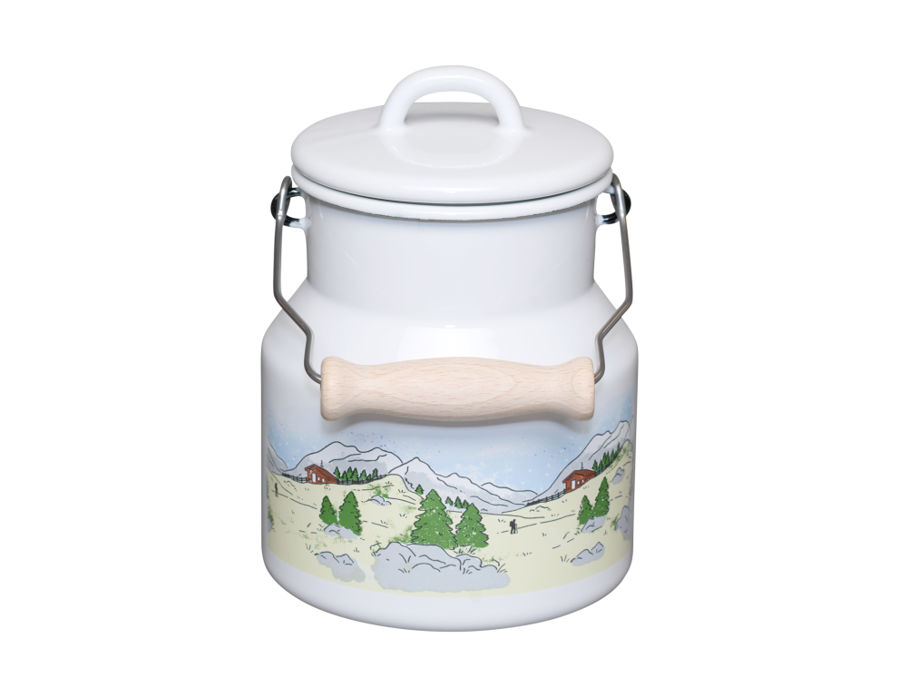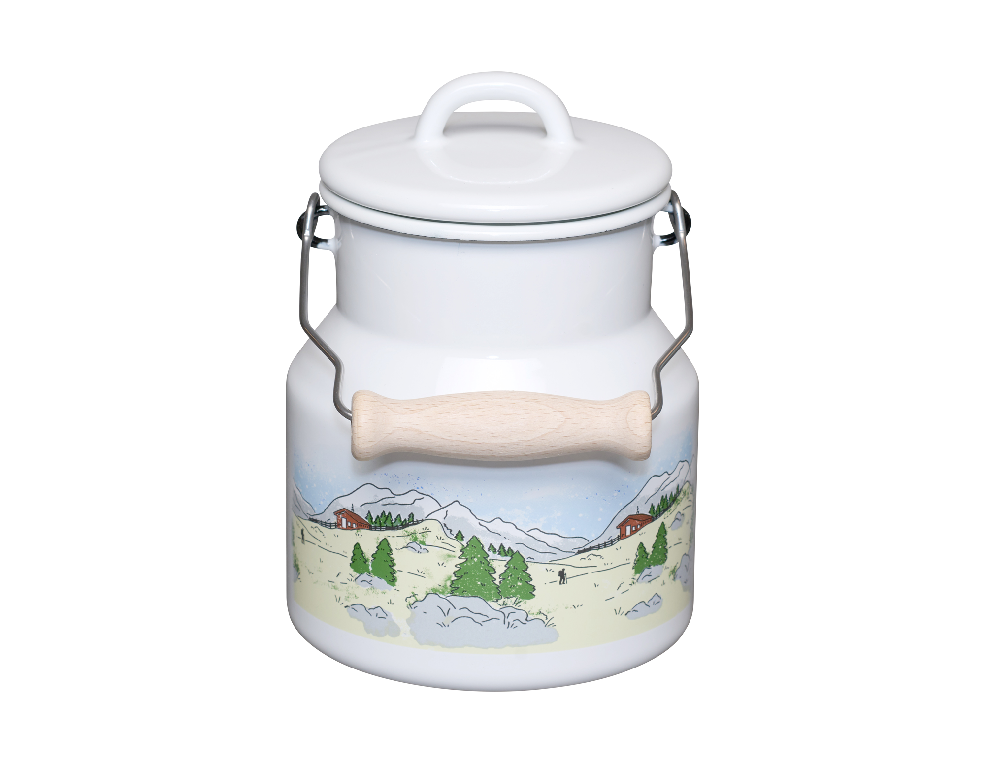 Unsere Milchkanne hat die klassische Form der Milchkannen von früher und ist mit einem Deckel aus reinweißer Emaille und einer gut schließenden Silikondichtung versehen. Der Metallträger ist mit einem Holzgriff ausgestattet, was den Transport von Milch, Suppen oder Saft erleichtert. Dank ihrer nostalgischen Form eignet sich die Milchkanne auch hervorragend als Dekoration oder für sommerliche Blumensträuße frisch von der Wiese.