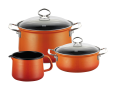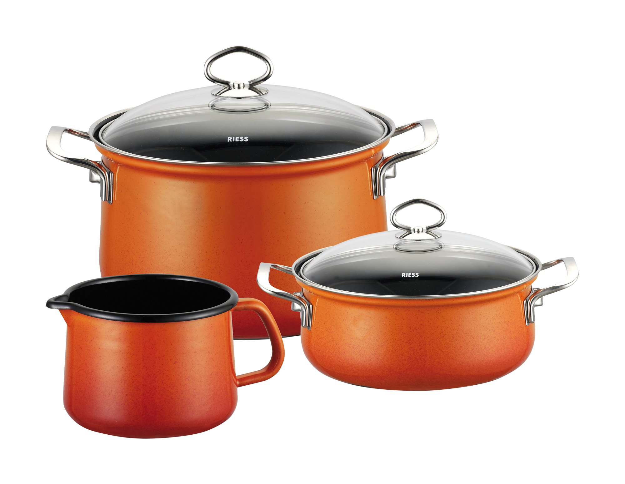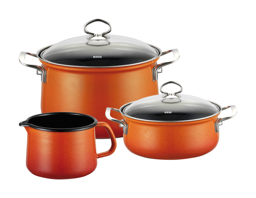 Unser dreiteiliges Geschirrset der Nouvelle Serie besticht durch modernes Design und einen spannenden Materialmix. Die Kasserollen und Kochtöpfe dieses Sets haben handlich geformte Edelstahlgriffe im modernen Design. Die Deckel der Kasserollen und Töpfe sind aus Glas und mit Edelstahlgriffen versehen. Der starke Stahl-Wärmespeicherboden sorgt dafür, dass sich die Wärme gleichmäßig und schnell verteilt. Dank der guten Wärmeleitung von Emaille werden auch die Topfwände rundum warm, was Energie spart. Der robuste Chromrand verhindert das Abschlagen der Emaille. Unser Kochgeschirr aus Emaille ist für alle Herdarten geeignet, einschließlich Gas, Elektro, Glaskeramik, Induktion und sogar offenes Feuer. Dank des Eisenkerns wird die Wärme schnell geleitet und gespeichert, was nachhaltiges und energiesparendes Kochen ermöglicht.