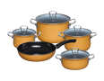 - bestehend aus: Fleischtopf mit Glasdeckel (16,20 und 24 cm) Kasserolle mit Glasdeckel (20 cm), Bratpfanne mit Kunststoffgriff (28 cm)