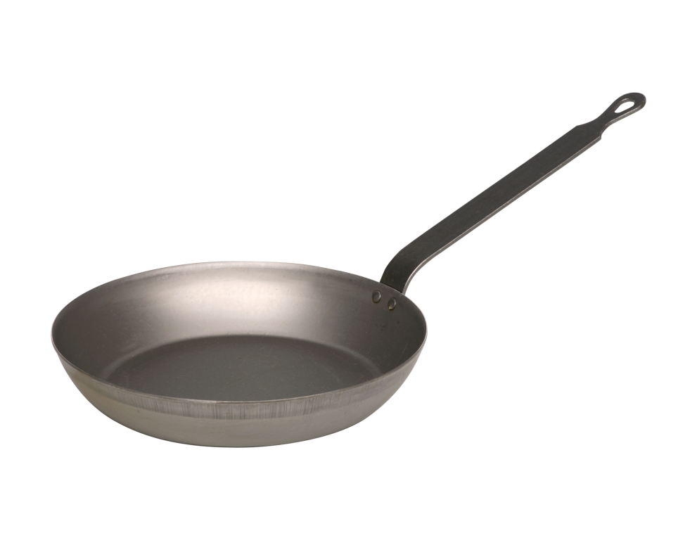 Unsere Eisenpfannen werden kaltgeschmiedet, indem eine ausgestanzte Stahlblechscheibe unter hohem Druck in eine Tiefziehform gepresst wird. An den Pfannenkörper wird ein Stiel befestigt, der immer eine Aufhängevorrichtung hat, damit die Pfanne wie früher üblich hängend aufbewahrt werden kann. Eisenpfannen sind bei Köchen nicht nur wegen ihres rustikalen Aussehens beliebt, sondern vor allem wegen ihrer exzellenten Brateigenschaften. Dank der schnellen Wärmeleitung von Eisen sind sie ideal zum scharfen Anbraten, was Bratkartoffeln und Fleisch besonders knusprig macht. Oft wird die Eisenpfanne auch als Servierpfanne verwendet, häufig in Verbindung mit dem „Pfannenknecht“ oder einem runden Brett als Pfannenuntersetzer. Mit der Zeit verbessert sich die Funktion der Pfanne durch die Bildung einer Patina, die durch die poröse Struktur der Pfanne entsteht und als Korrosionsschutz dient. Mit richtiger Pflege, um Rostbildung zu vermeiden, sind RIESS Eisenpfannen treue Begleiter für viele kulinarische Abenteuer. Neben der klassischen Verwendung für Bratkartoffeln, Fleisch oder Nockengerichte kann die Eisenpfanne für alle Gerichte genutzt werden, die eine Pfanne erfordern. Vor dem ersten Gebrauch muss die Wachsschicht, die als Rostschutz dient, mit heißem Wasser entfernt und die Pfanne eingebrannt werden. Nach Gebrauch sollte die Pfanne niemals in den Geschirrspüler gegeben werden. Stattdessen einfach mit einem Küchentuch auswischen. Bei starker Verkrustung mit Wasser, Salz und Bürste reinigen und dann auf der warmen Herdplatte gut trocknen lassen.