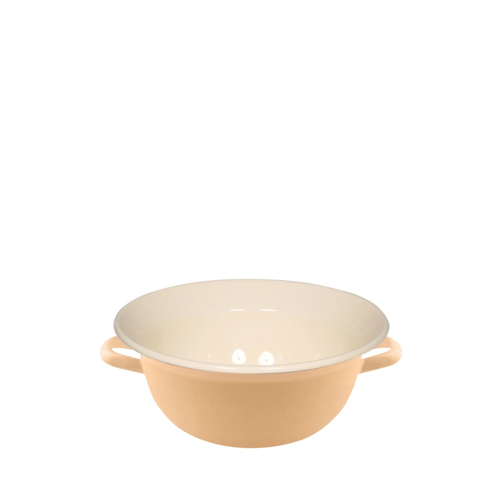 Die typische Form des Weitlings hat in Österreich eine lange Tradition, insbesondere als Teigschüssel. Weitlinge sind Emailleschüsseln mit zwei großen Henkeln, die das Transportieren schwerer Teige erleichtern. Unsere Weitlinge haben alle den typischen Bördelrand. Es gibt sie in verschiedenen Größen, und sie sind vielseitige Helfer beim Backen und Kochen oder als Serviergeschirr. Der Weitling eignet sich nicht nur zum Kneten von Teigen, sondern auch zum Servieren von Salaten oder Obst. In den kleineren Weitlingen lassen sich das morgendliche Müsli zubereiten oder Aufstriche, Nüsse, Knabbergebäck und Kekse servieren. Dunkle Spuren auf der Emaille, die nach dem Gebrauch von Schneebesen oder Mixern entstehen können, sind meist Abrieb von Besteck oder Metallküchenhelfern. Diese lassen sich einfach mit dem RIESS Emaillereiniger oder einer milden Scheuercreme entfernen.