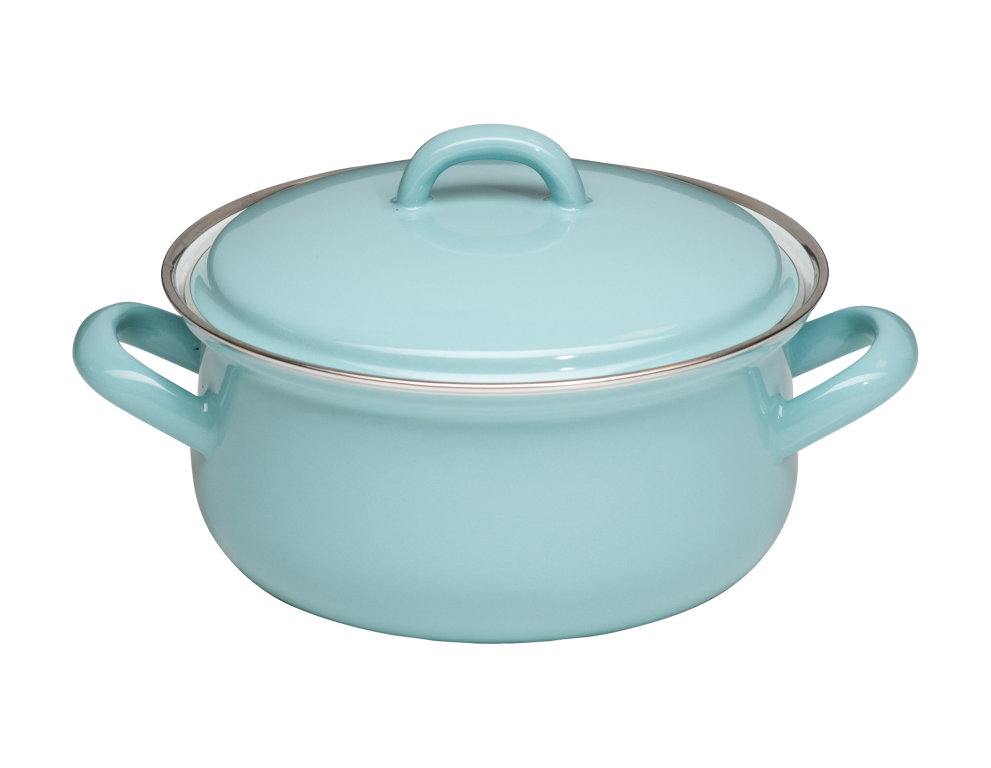Unsere klassischen Emaille-Kasserollen mit Deckel zeichnen sich durch ihre gerade Form und die traditionellen Emaillegriffe aus. Der Deckel sitzt fest auf der Kasserolle und dient als Energiewächter: Sobald der Deckel zu klappern beginnt, ist es Zeit, die Hitze zu reduzieren und so Strom zu sparen. Je nach Herd kann etwa 5 Minuten vor Garende vollständig abgeschaltet werden, da Emaille die Hitze lange speichert. Daher empfehlen wir dringend, Topflappen zum Heben der Töpfe und Deckel zu verwenden, da auch die Emaillegriffe die Wärme speichern. Ein weiterer Vorteil der Emaillegriffe ist, dass man den Topf auch problemlos zum Warmhalten in den Backofen schieben kann. Der Rand der Kasserolle ist mit einem robusten Chromrand versehen. Die Kasserolle mit Deckel ist je nach Farbe und Dekor in verschiedenen Größen erhältlich und gehört zur Basisausstattung jeder Küche.