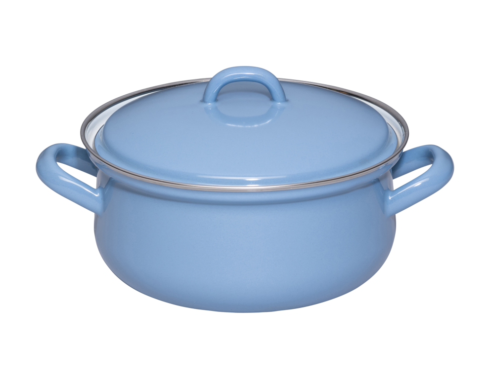 Unsere klassischen Emaille-Kasserollen mit Deckel zeichnen sich durch ihre gerade Form und die traditionellen Emaillegriffe aus. Der Deckel sitzt fest auf der Kasserolle und dient als Energiewächter: Sobald der Deckel zu klappern beginnt, ist es Zeit, die Hitze zu reduzieren und so Strom zu sparen. Je nach Herd kann etwa 5 Minuten vor Garende vollständig abgeschaltet werden, da Emaille die Hitze lange speichert. Daher empfehlen wir dringend, Topflappen zum Heben der Töpfe und Deckel zu verwenden, da auch die Emaillegriffe die Wärme speichern. Ein weiterer Vorteil der Emaillegriffe ist, dass man den Topf auch problemlos zum Warmhalten in den Backofen schieben kann. Der Rand der Kasserolle ist mit einem robusten Chromrand versehen. Die Kasserolle mit Deckel ist je nach Farbe und Dekor in verschiedenen Größen erhältlich und gehört zur Basisausstattung jeder Küche.