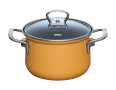 Der Farbton Orange erwärmt nicht nur ihre Gerichte, sondern bringt Sonne in die Küche. Töpfe und Kasserollen sind mit starkem Stahl- Wärmespeicherboden, rostfreiem Schüttrand, Edelstahlgriffen und Glasdeckel ausgestattet.