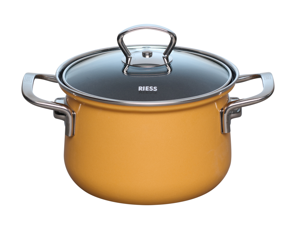 Reinigung im Geschirrspüler: RIESS Emaille kann im Geschirrspüler gewaschen werden. Wir empfehlen die händische Reinigung für lange Freude am strahlenden Glanz von Emaille. Bei Verwendung des Geschirrspülers wählen Sie das schonende Gläserspülprogramm, um Glanz und Leuchtkraft der Emaille lange zu bewahren. Verwenden Sie das schonende Gläserprogramm und Reinigungsprodukte unseres Partners Claro für strahlend saubere Töpfe und Pfannen. Alle Tipps zum Thema Pflege im Geschirrspülter finden Sie in diesem im Video.