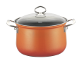Korallenrot in der Küche, lässt allen Fans warmer Farben das Herz höher schlagen. Töpfe und Kasserollen sind mit starkem Stahl-Wärmespeicherboden, rostfreiem Schüttrand, Edelstahlgriffen und Glasdeckel ausgestattet.