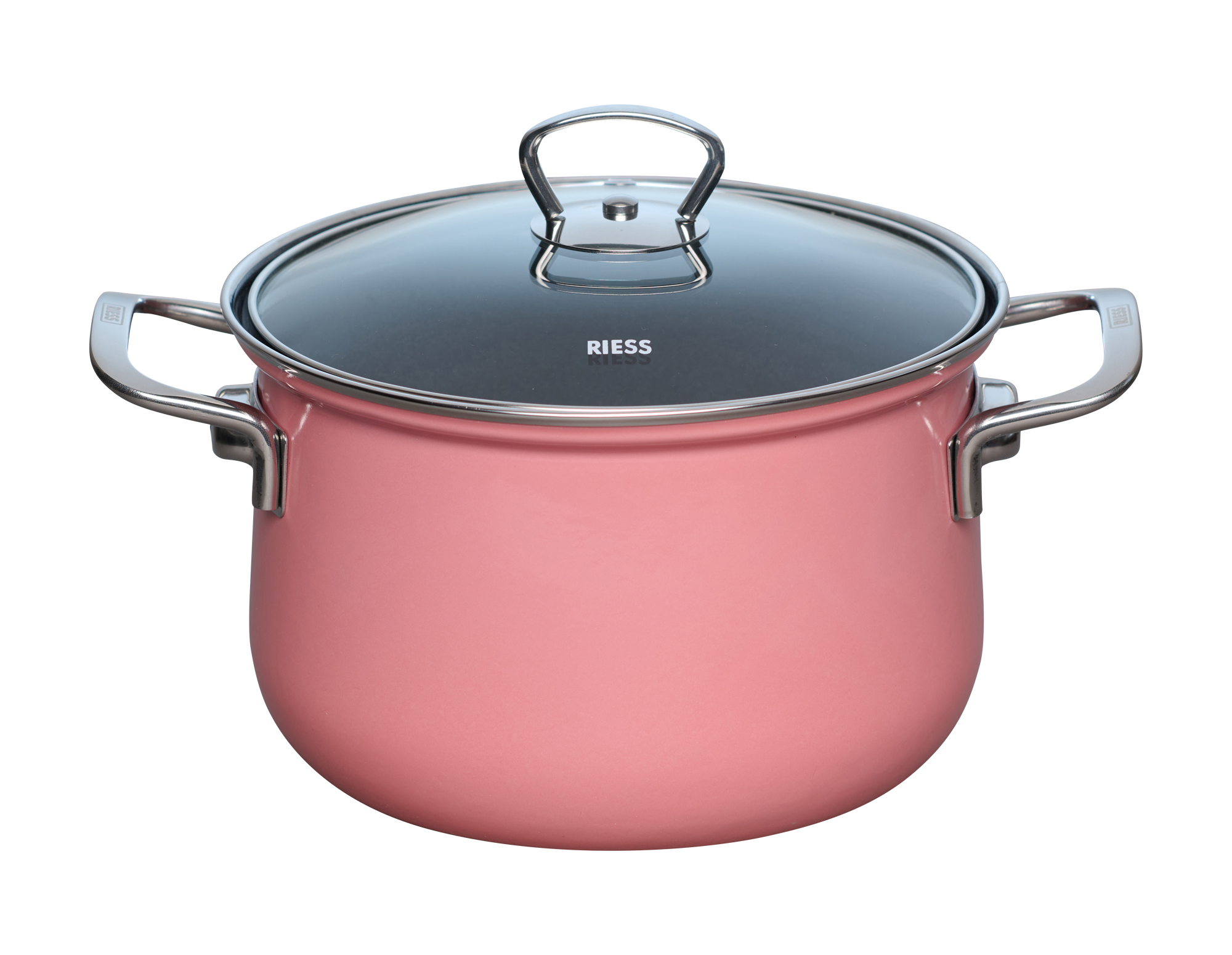 Die starke, poppige Farbe Pink ist ein knalliger Blickfang und bringt Frische für jede Küche. Töpfe und Kasserollen sind mit starkem Stahl-Wärmespeicherboden, rostfreiem Schüttrand, Edelstahlgriffen und Glasdeckel ausgestattet.
