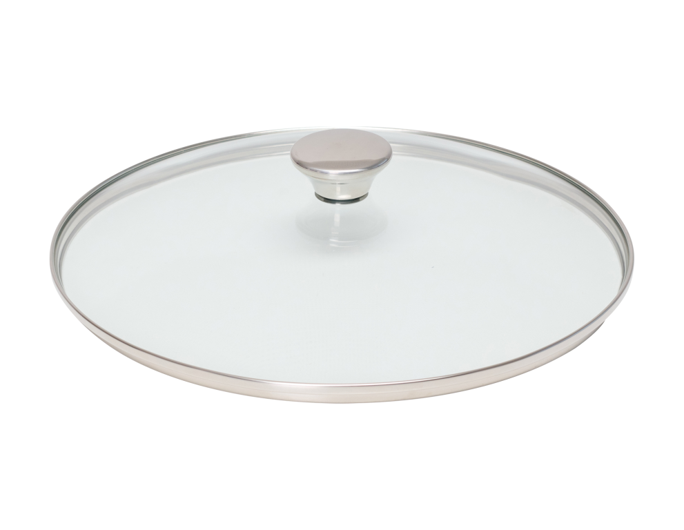 Glasdeckel flach mit Edelstahlknopf Ø 28cm