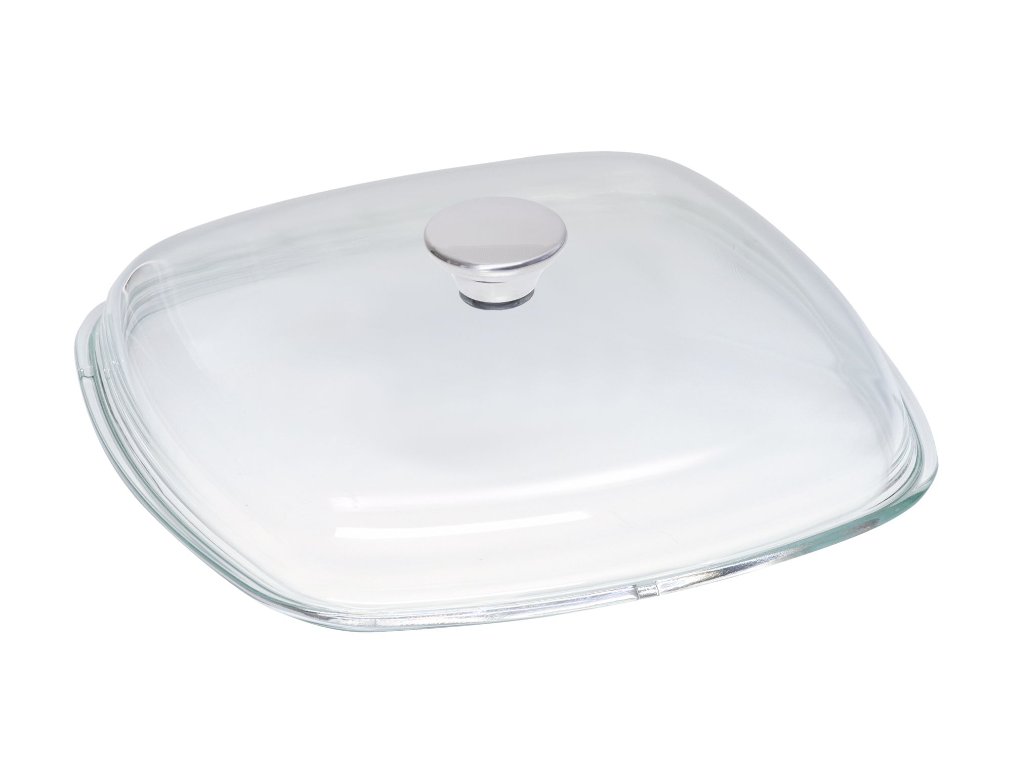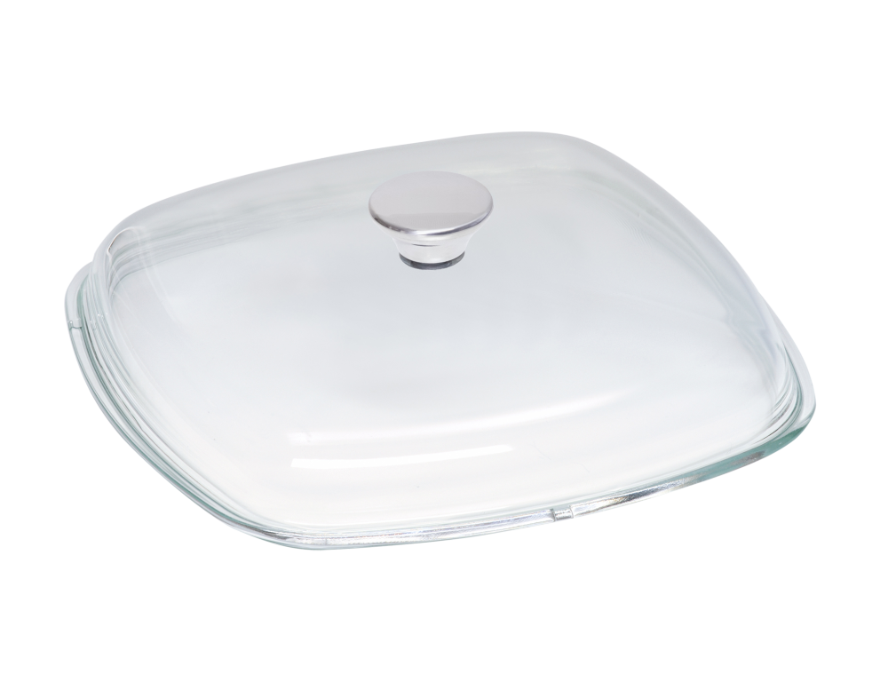 Glasdeckel eckig mit Edelstahlknopf 28/28cm