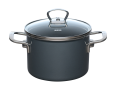 Der edle Grauton verleiht jeder Küche eine moderne, stilvolle Note und sieht am Tisch gut aus. Die Emailletöpfe und -kasserollen haben eine klassische zylindrische Form, rostfreien Schüttrand, Edelstahlgriffe und Glasdeckel. Der extra starke Stahl-Wärmespeicherboden gewährleistet besonders energieeffizientes Kochen.