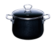Black Magic ist ein starker Farbton für ein lässig-cooles Ambiente in der Küche, in dem jedes Gericht besonders gut zur Geltung kommt. Top-Qualität mit extra starkem Stahl-Wärmespeicherboden für besonders energieeffizientes Kochen, rostfreiem Schüttrand, Edelstahlgriffen und Glasdeckel.