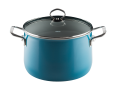Edles Blau für all jene, denen gedeckte Farben und moderne Formen wichtig sind. Top-Qualität mit extra starkem Stahl-Wärmespeicherboden für besonders energieeffizientes Kochen, rostfreiem Schüttrand, Edelstahlgriffen und Glasdeckel.