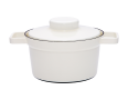 Die Aromapots bestechen durch ihr zeitloses und schlichtes Design. Gefertigt aus 100% Stahl und Emaille, eignen sich die Aromapots gleichermaßen als Kochtopf, Suppentopf und Schmortopf. Dank der Abwesenheit von Kunststoffteilen können sie auch bei hohen Temperaturen auf jedem Herd und im Backofen verwendet werden. Die konische Form der Aromapots ermöglicht ein platzsparendes Stapeln, sowohl ineinander als auch aufeinander. Der Deckel kann umgedreht als Zwischenablage, Schüssel oder Teller verwendet werden und dient am Tisch als Untersetzer. Beim Stapeln nimmt er umgekehrt aufgesetzt wenig Platz ein. Die Einsatzmöglichkeiten der Aromapots sind vielfältig: Von morgendlichem Brei über Schmorgerichte und Suppen bis hin zu Beilagen. Im Backofen lassen sich die Aromapots auch als Schmortopf oder Backform, beispielsweise für Brot, nutzen. Das Modell Topf 20 cm ist auch zum Dampfgaren geeignet, wofür ein speziell entwickelter Steamer zur Verfügung steht, mit dem Gemüse perfekt gegart werden kann. Um Rostbildung zu verhindern, sollte der Rand des Aromapots regelmäßig mit etwas Pflanzenöl eingerieben werden.