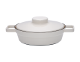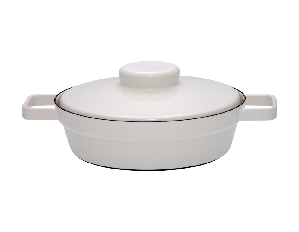 Die Aromapots Pfannen zeichnen sich durch ihr zeitloses und schlichtes Design aus. Hergestellt aus 100% Stahl und Emaille, eignen sich die Aromapots sowohl als Pfanne als auch als Backform. Sie sind frei von angeschraubten Kunststoffteilen, wodurch sie auch bei hohen Temperaturen auf jedem Herd und im Backofen verwendet werden können. Um eine gleichmäßige Ausdehnung des Materials zu gewährleisten und Abplatzungen der Emailleglasur zu vermeiden, sollten die Pfannen stets bei niedriger Hitze erwärmt und erst nach kurzer Zeit auf höhere Temperaturen gestellt werden. Die konische Form der Aromapots ermöglicht ein platzsparendes Stapeln, sowohl ineinander als auch aufeinander. Der Deckel kann umgedreht als Zwischenablage, Schüssel oder Teller für Zutaten, Kochlöffel und andere Utensilien genutzt werden. Am Tisch dient er als Untersetzer, und beim Stapeln nimmt er, umgekehrt aufgesetzt, wenig Platz ein. Der kreativen Verwendung der Aromapots Pfannen sind keine Grenzen gesetzt: Steaks, Gemüse und Eiergerichte gelingen ebenso gut wie Quiches und Kuchen im Backofen. Um Rostbildung zu verhindern, sollte der Rand der Pfanne regelmäßig mit etwas Pflanzenöl eingerieben werden.