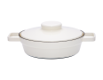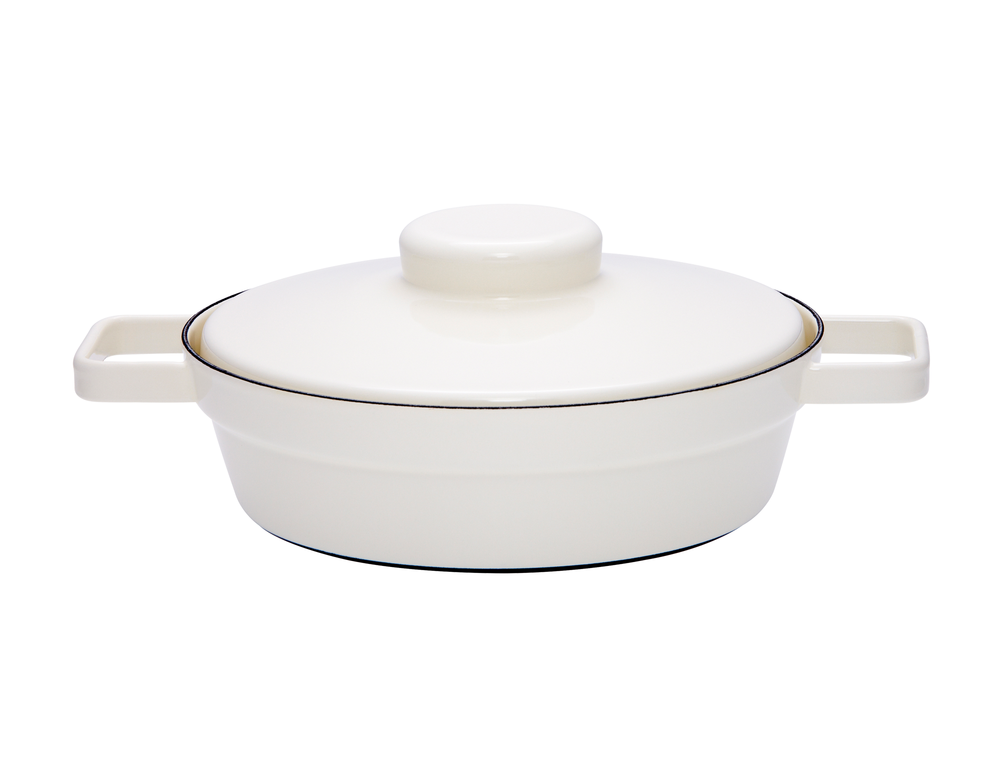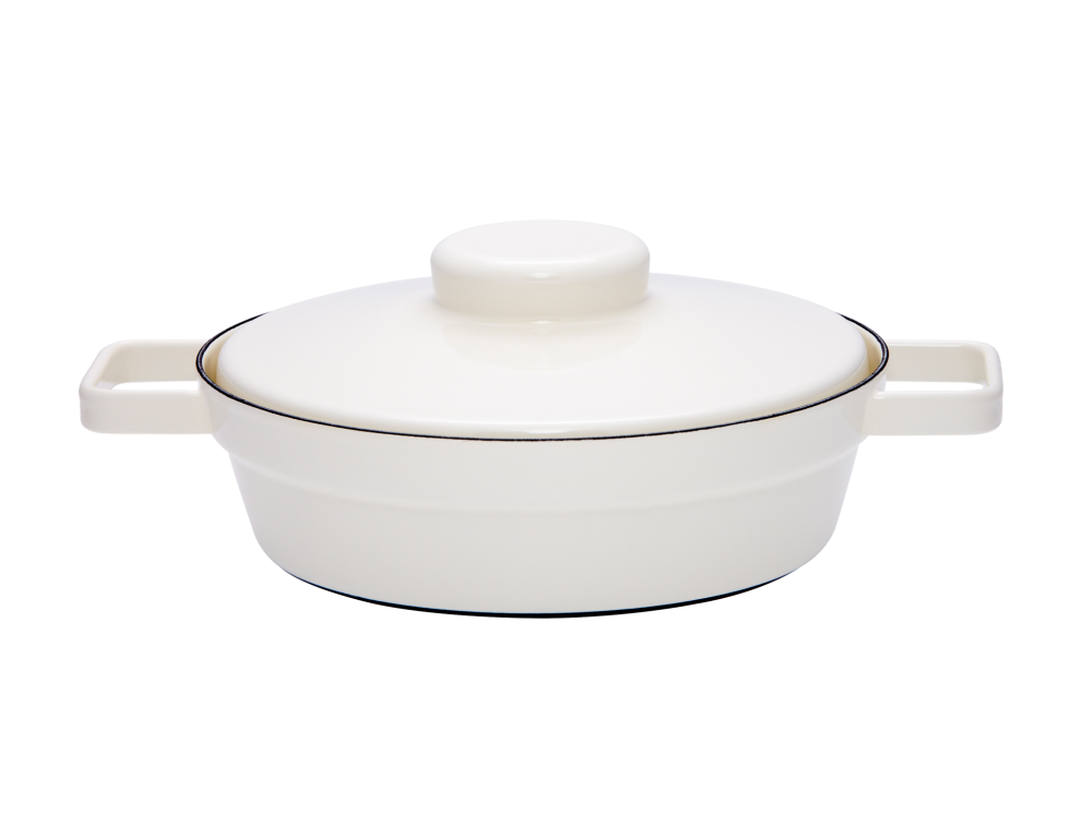 Die Aromapots Pfannen zeichnen sich durch ihr zeitloses und schlichtes Design aus. Hergestellt aus 100% Stahl und Emaille, eignen sich die Aromapots sowohl als Pfanne als auch als Backform. Sie sind frei von angeschraubten Kunststoffteilen, wodurch sie auch bei hohen Temperaturen auf jedem Herd und im Backofen verwendet werden können. Um eine gleichmäßige Ausdehnung des Materials zu gewährleisten und Abplatzungen der Emailleglasur zu vermeiden, sollten die Pfannen stets bei niedriger Hitze erwärmt und erst nach kurzer Zeit auf höhere Temperaturen gestellt werden. Die konische Form der Aromapots ermöglicht ein platzsparendes Stapeln, sowohl ineinander als auch aufeinander. Der Deckel kann umgedreht als Zwischenablage, Schüssel oder Teller für Zutaten, Kochlöffel und andere Utensilien genutzt werden. Am Tisch dient er als Untersetzer, und beim Stapeln nimmt er, umgekehrt aufgesetzt, wenig Platz ein. Der kreativen Verwendung der Aromapots Pfannen sind keine Grenzen gesetzt: Steaks, Gemüse und Eiergerichte gelingen ebenso gut wie Quiches und Kuchen im Backofen. Um Rostbildung zu verhindern, sollte der Rand der Pfanne regelmäßig mit etwas Pflanzenöl eingerieben werden.