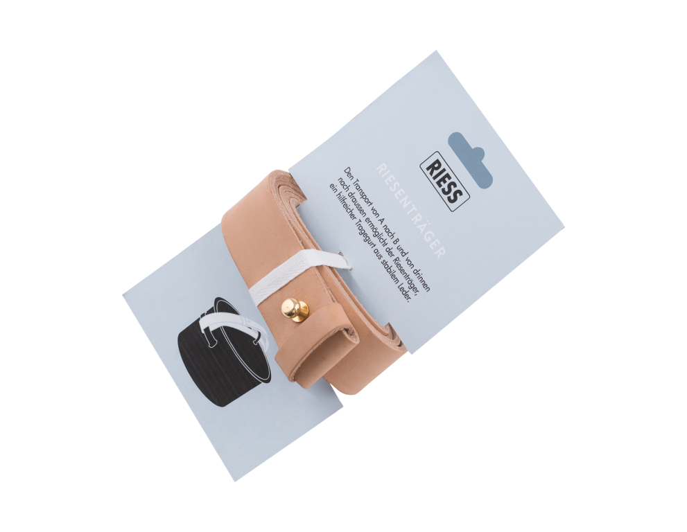Passend zur Riesen & Zwerge Serie gibt es eine praktische Transportlösung: den Riesenträger. Die Riesen sind die großen Emailletöpfe – ideal für das Aufkochen und Einkochen größerer Mengen. Der Riesen Tragegurt, auch Riesenträger genannt, aus hochwertigem Rindsleder, gegerbt mit pflanzlichen Gerbstoffen, erleichtert den Transport dieser Töpfe von A nach B – ob drinnen oder draußen. Egal ob für ein Picknick, den Weg zur Party oder den Campingurlaub, der Riesenträger ist ein verlässliches Accessoire, das den Transport mühelos und stilvoll macht. Ein unverzichtbarer Begleiter für alle, die Großes vorhaben!