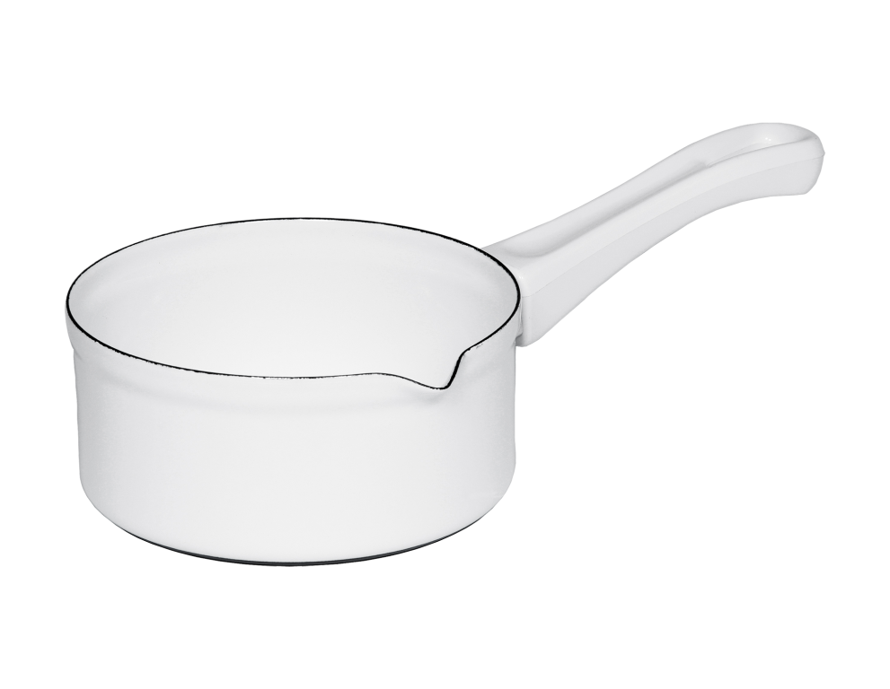Strahlendes Weiß ist in jeder Küche schön, ob als Topf, Kasserolle, Schnabeltopf, Sieb, Schöpf- oder Schaumlöffel.
